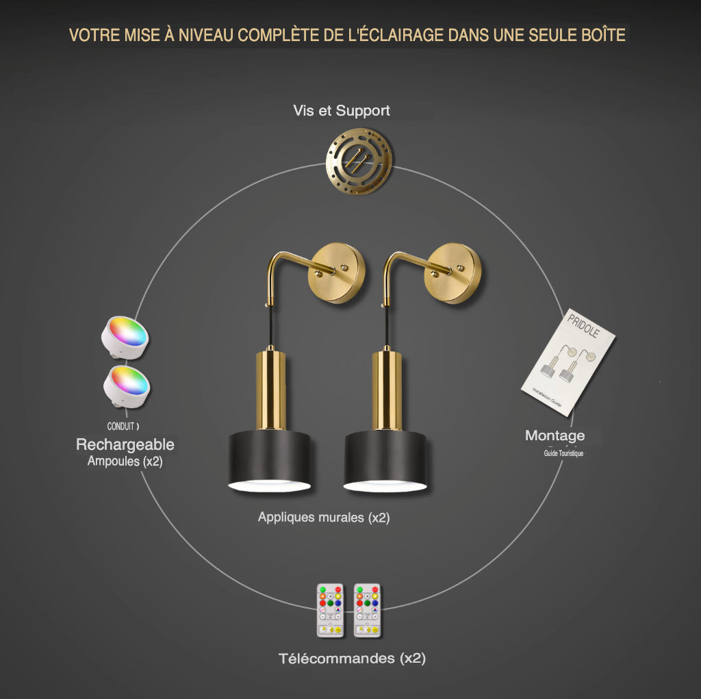 APPLIQUES MURALES SANS FIL GLOWDROP (ENSEMBLE DE 2 + 2 AMPOULES GRATUITES)